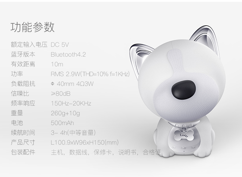 喇叭,悅耳音質(zhì),低音更飽滿,高音更明亮; 高性能鋰電池
